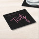 Custom 30th birthday paper coasters with pink script text on black background, perfect for thirtieth birthday party celebrations. Customize with your own name. Colours can be edited in the design tool. Please use the message me button below for help with further customization and special requests. © Zoe Chapman Design