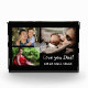 Modern Simple Elegant Trendy Custom Photo Collage Love You Dad Photo Block. He's an awesome dad! Personalized one-of-a-kind unique create your own custom 3 photo collage keepsake photo block, featuring a small heart detail in a fingerprint design. Easily add your own text and personal pictures. This memorable customized keepsake captures the love between father and child. Modern handlettering typography notes "Love you Dad" plus child's or children's name(s). Option to change the name from Dad to Daddy or whatever name you choose, or uncle or grandpa or grandad. Your photos can be colour or black and white. Black background which can also be changed. Unique gift idea for his birthday, Christmas, Father's Day or just because. Personalized thoughtful gifts for dad from daughter or son for the dad who wants nothing. Elegant addition to his desk. He'll treasure it always! Step by Step Inspiration Series available exclusively on Zazzle at zazzle.com/store/KrisHarty, designed by international designer, Kris Harty. © 2020 Kris Harty Step By Step Inspiration