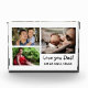 Modern Simple Elegant Trendy Custom Photo Collage Love You Dad Photo Block. He's an awesome dad; best dad ever! Personalized one-of-a-kind unique create your own custom 3 photo collage keepsake photo block, featuring a small heart detail in a fingerprint design. Easily add your own text and personal pictures. This memorable customized keepsake captures the love between father and child. Modern handlettering typography notes "Love you Dad" plus child's or children's name(s). Option to change the name from Dad to Daddy or whatever name you choose, or uncle or grandpa or grandad. Your photos can be colour or black and white. White background colour can also be changed. Unique gift idea for his birthday, Christmas, Father's Day or just because. Personalized thoughtful gifts for dad from daughter or son for the dad who wants of nothing. Elegant addition to his desk. He'll treasure it always! Step by Step Inspiration Series available exclusively on Zazzle at zazzle.com/store/KrisHarty, designed by international designer, Kris Harty. © 2023 Kris Harty Step By Step Inspiration