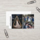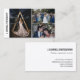 Flat business card for a professional photographer, where you can showcase your work in a photo collage of three photos with your business name written across the left hand side in modern black letters. Photo business card for wedding photographers personalized with your photos. Event photographer business card in white with black text and your photos.