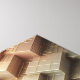 A sophisticated 3D abstract artwork featuring tiered isometric blocks and cubic structures. This architectural design combines matte grey and warm beige tones with glowing golden grid lines and glitter textures. A perfect statement piece for modern office decor, futuristic home styling, and premium tech accessories.