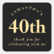 Modern 40th Birthday Black and Gold Thank You Square Sticker