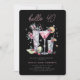 Modern Glittery 40th Birthday Party Invitation - featuring sparkling cocktails with modern typography with a little glitter thrown in. Silver and blush pink are dramatic on a black background. The back of the invitation is coordinating glitter for a festive touch.