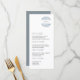 A modern design in dusty blue. This wedding menu has space for four courses. Be brief but use up to three lines for each course. The floral motif in the top right corner matches the design of our dusty blue floral collection. If you love this menu, be sure to browse more matching and coordinated items in the collection.