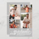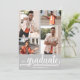 Add your favourite four photos to the front of these graduation party invitations featuring graduate and class of in chic lettering on a grey background. MORE designs and colours done in our store including invitations, save the date cards and postcards.