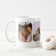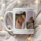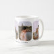 Modern 4-Photo Wedding Couple Names Coffee Mug. Customize with four wedding photos, engagement photos, or general couple photos of your choice, and add your names and a date beneath.