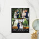 Modern photo collage "Love and thanks" design wedding thank you card in a black with white text design - customized with four of our favourite wedding day photos and your thank you message.