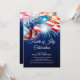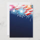Modern fireworks fourth of July invitation featuring blue, red & white fireworks & american flag display set on a blue background. Flip the back of our summer patriotic holiday invite over to view a matching back. Stylish invitation for a memorial day barbecue, 4th of July cookout, labour day party, or any patriot themed party.
