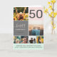 Modern simple 50th birthday pink 6 photo collage grid with pastel blush pink and grey editable colours and modern typography.