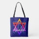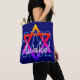 Modern, stylish Rosh Hashanah Hebrew New Year tote bag, showing a colourful Star of David with 5782 (Hebrew New Year for 2021) and the word, AWAKE! (the Hebrew meaning of 5782) in white script typography. 'Awake' can refer to a physical awakening or a spiritual opening of the eyes. The background is midnight blue. The design is repeated on the back. This would make a great gift for Hebrew New Year from Sept 7, and for anyone celebrating an important event throughout the year. Choose from a wide selection of Jewish-themed cards, clothing, gifts and party supplies by Berean Designs.