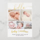 A modern, simple and elegant white baby girl birth announcement with 5 photo grid collage, and an elegant typography calligraphy, with hello baby name. Introducing baby with real gold foil.