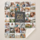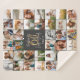 Modern minimal multi photo script 60th birthday blanket gift. Ideal gift available for mums, dads, grand, grandad of any family member. Stunning elegant script text. Black, white and gold design.
