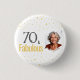 Modern 70 and Fabulous Birthday Photo button. 70 and fabulous text in trendy typography on white background. Personalize it with your photo, your name and your age, and make your own elegant birthday party decor for a woman`s birthday party.