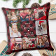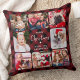 Modern 8 Photos Personalized Holiday Red Plaid Throw Pillow