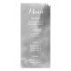 Modern abstract watercolor splash grey winter wedding menu card featuring a hand painted watercolor paint splash with texture in tones of grey, trees in white with snow, snowflakes and text in white and grey.