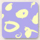 This modern acrilic coaster is designed with whitish yellow spots and graphic gestures over a plain vibrant lavender background.
