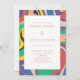 Modern colourful bold abstract artsy shapes trendy personalized wedding invitation. Pink purple yellow blue colour palette. This card is easily editable. If you need help with the customization of this product or you need more matching products for this collection kindly message me via Zazzle.