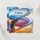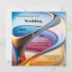 A modern art wedding invitation featuring a colourful flow abstract design. On the back is your favourite photo. A QR code template can be easily customized by adding your own URL, or you can simply delete it.