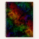 This spiral bound notebook features a colourful abstract rainbow watercolor and ink painting on a black background.