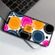 A bright and bold design of abstract circles in shades of pink, teal and orange. A centred monogram on an orange square is available to customize the design. Stylish and eye catching.