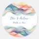 Modern Abstract Colour Wave Blue White Wedding Classic Round Sticker