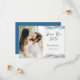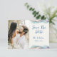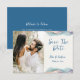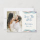 A Photo Save The Date Wedding Announcement designed in bright abstract colour accents. The front text includes: Save the Date, The Bride and Groom's First Names and Wedding Date on a white background. The reverse includes the text: Details to Follow and your Wedding Website on a matching blue background with abstract colour accent. To personalize, simply insert your favourite couple photo into our easy template, replacing the sample image. Move the photo to the left and ensure it covers the area. Next, insert your text details into our template, replacing the sample. Be sure to view the entire Modern Abstract Colour Wave Wedding Collection for matching cards and accessories. Background colours can be changed using our Colour Picker Tool.