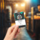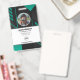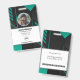 Company employee identification badge with templates created for you. Background is a modern abstract in a black and green colours.