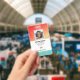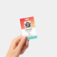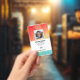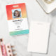 Company employee identification badge with templates created for you. Background is a modern abstract in a gradient orange, yellow and green colour.