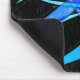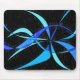 A modern abstract black and blue mousepad with an cool coloured pencil drawing of a wavy blue finned fish.