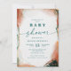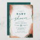 Modern Abstract Ethereal Watercolor Dark Teal & Copper Baby Shower Invitations. This modern invite is beautify hand-painted with rich colours that are perfect for Fall. Shown in the Dark Teal Wedding Colour Palette colorway of: Dark Teal Peacock Green, Copper Rust, Dusty Gold, Almond Grove, and Bisque Beige. With faux Metallic glitter foil details, and a gorgeous signature script font with tails, the ethereal watercolor wedding collection is sure to make your wedding memorable and beautiful!