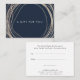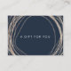 Navy blue background with faux gold circles and an elegant font saying "gift for you" on the front and all your information on the back in a sans serif font ready for quick and easy customization.