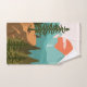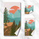 Introducing our Modern Abstract Forest, Mountains, and Sunrise Bath Towel Set. Featuring landscape illustration in vintage style. Suitable for as a gift for nature, hiking, and camping lovers.