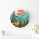 Modern Abstract Forest, Mountains, and Sunrise Large Clock
