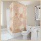 Beautiful abstract circle pattern shower curtain in creamy, rosy, blush tones. Adds a modern look and gentle color to any bathroom.