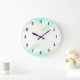 A clock with an abstract border along the top and bottom with green and blue swirly colours. A soft and summery design.