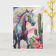 A vibrant, modern abstract painting depicting a horse surrounded by cacti and succulents in soft pastel colours. The horse is rendered with splashes of bold colour, while the desert plants are painted with a mix of muted greens, pinks, and blues. The fusion of organic forms and lively hues creates a playful yet calming composition, blending natural elements with a contemporary artistic flair.