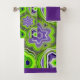 Modern Abstract Lime Green, Purple and Yellow Bath Towel Set