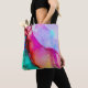 A shoulder tote bag with a fancy artistic abstract design. Watercolor painting with the colours mixing and mingling creating a nice flowing pattern.