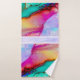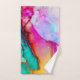Bath towel set with a fancy artistic abstract design. Watercolor painting with the colours mixing and mingling creating a nice flowing marbled pattern.