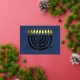 Modern Abstract Menorah Black Yellow Foil Holiday Card