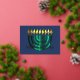 Modern Abstract Menorah Green Foil Holiday Card