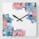 Modern Abstract Paint Splash Inks Blue Pink Square Wall Clock