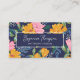 A floral business card that is sure to catch the eye with a vibrant pattern drawn by hand on a tablet in a gorgeous color palette of yellow, pink, green, and navy blue. Personalize the yellow and pink floral business card with your name in a thin signature script. The back is in a matching soft and pale shade of pink, with a silhouette version of the flowers in white. Use the business card for your boutique, beauty salon, hair salon, nail business, interior design business, and much more.