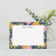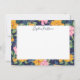 Write thank you cards and messages to your friends and loved ones on this gorgeous personalized notecard with a frame of a lush modern floral pattern with pink and yellow flowers, green and blue greenery, and a dark blue background. Add your name in a thin script. The back features a matching pink polka dot pattern.