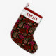 Modern Abstract Red One line art Shapes Pattern Photo Christmas Stocking. One line shapes in red, pink and beige on black background. Festive and modern holiday design. Add your name.