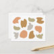 Modern abstract shapes postcard. The shapes are burnt orange, olive green, pink, and grey.