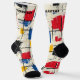 Elevate your style with these modern abstract socks, featuring bold brushstrokes in red, blue, yellow, and black against a cream background. The structured geometric grid adds a contemporary touch to the vibrant, artistic design. Perfect for art enthusiasts and fashion lovers, these socks bring a creative flair to any outfit.