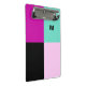 A stylish and modern mini clipboard with an abstract colour block design. With colour sections in magenta, black, turquoise and pink, the clipboard adds a vibrant splash of colour to your everyday tasks. The back of the clipboard is plain magenta. Personalize the trendy clipboard with an initial, which will appear as a monogram on the top right of the design.