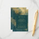 This modern wedding details enclosure card features a teal blue and gold abstract watercolor background. Customize the gold-coloured text in stylish fonts on a dark teal rectangle. The abstract design is repeated on the back of the card.