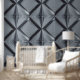 Transform your space with this striking minimalist wallpaper. Featuring simple geometric shapes in a limited colour palette, the design showcases a series of faceted triangles and squares arranged in a symmetrical pattern. The shades of blue and grey create a sense of depth and dimension, resulting in a sleek, modern, and visually captivating effect. Perfect for adding a contemporary touch to any room.